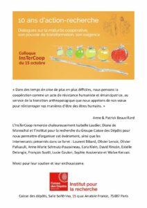 L'InsTerCoop est un laboratoire d’action-recherche sur le processus coopératif, et un centre de ressources et de ressourcement au service des personnes, des organisations et des territoires pour croître en maturité coopérative et faire de la coopération une source de développement et d’épanouissement.